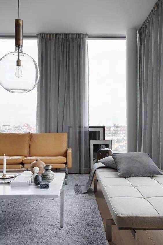 高级灰自带现代味,天生一副文艺感爆表的“高冷范”。整体简洁纯粹,以免多色间争奇斗艳,带来躁动感。用窗帘呼应地毯、沙发等其它软质家装的色感,是简单又保险的做法。