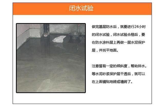 2、防水试验要做到位,闭水试验的时间最好是在24~48小时,水淹没地面的高度,最少要有3cm。