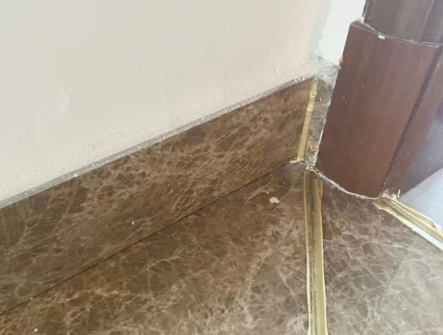当然,这种忘记压缝的地方也不止一处,包括踢脚线角落的位置、地板砖角落位置,都有这种忘记压缝的情况,大部分时候是因为师傅干活太过马虎,或者是不够有条理。