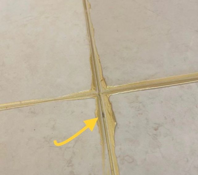 另外一种常见的问题,就是瓷砖的边缘破损,这个问题其实在美缝的过程中还是挺常见的,大多是因为在美缝前剔缝的时候,因为工具倾斜而损伤的瓷砖。