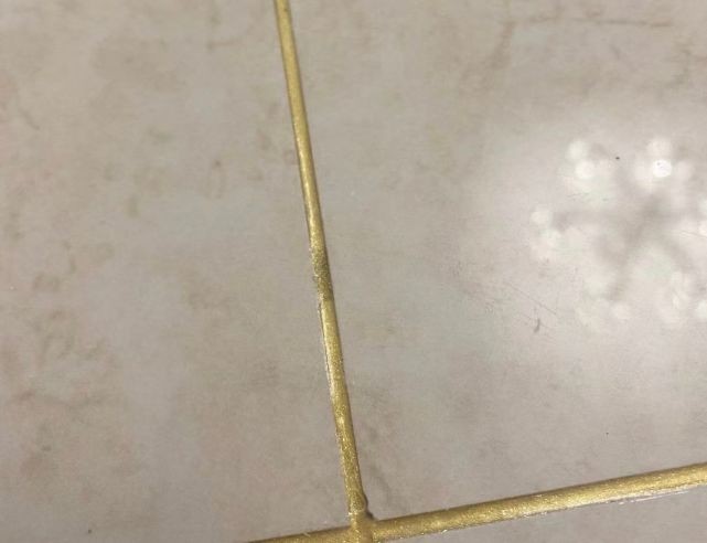 首先就是美缝剂里有黑点,这大概率是因为在做美缝前,没有把地板砖清洁到位,美缝师傅也直接糊弄过去了,所以做好之后,缝隙里有很多这样的黑点,看起来非常难受。