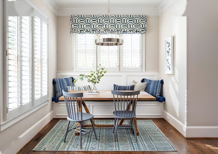 餐桌一侧设卡座增容,处理到位的话,上面坐人下面收纳,这不也挺不错的吗?