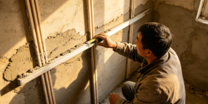 很多业主装修时,只关注墙面刷什么漆、贴什么砖,却忽略了“冲筋找平”这个基础工序,导致后期墙面凹凸不平、贴砖空鼓、壁纸起翘,甚至影响家具摆放。冲筋找平作为墙面基层处理的核心步骤,直接决定墙面的平整度和后续装修效果,尤其适合墙面误差大、需要贴壁纸、壁布或做极简风装修的家庭。这篇攻略,从作用、适用场景、施工流程到避坑技巧,一次性讲清冲筋找平,帮你避开所有雷区。