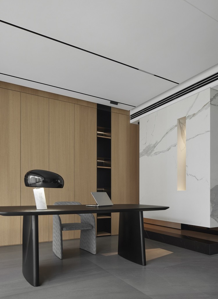 精致收缩现代简约风格40平米小户型书房背景墙装修效果图