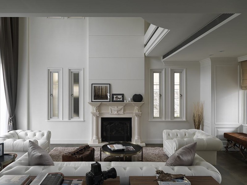 经典黑白灰现代简约风格200平米别墅客厅背景墙装修效果图