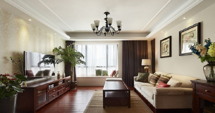 古典温暖的美式110平米三居室客厅窗户装修效果图