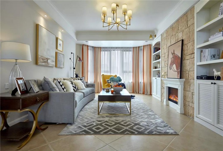 中海湖滨一号美式轻奢四居室客厅装修效果图