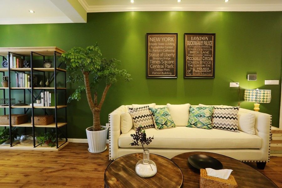 绿色田园美式风格80平米公寓客厅背景墙装修效果图