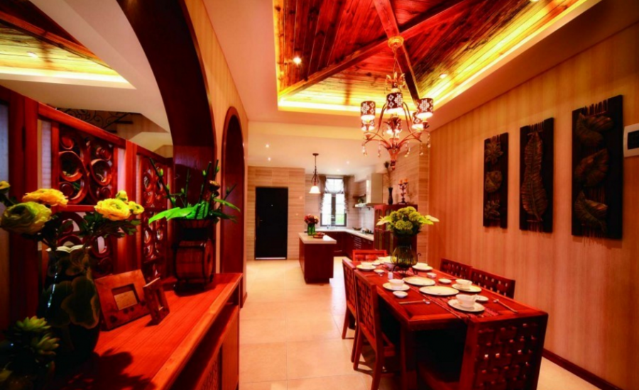 热情的东南亚风格120平米三居室餐厅吊顶装修效果图