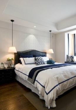 典雅简约美式风格100平米三居室卧室背景墙装修效果图