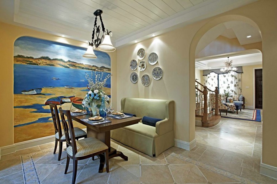 唯美的地中海风格160平米别墅餐厅装修效果图